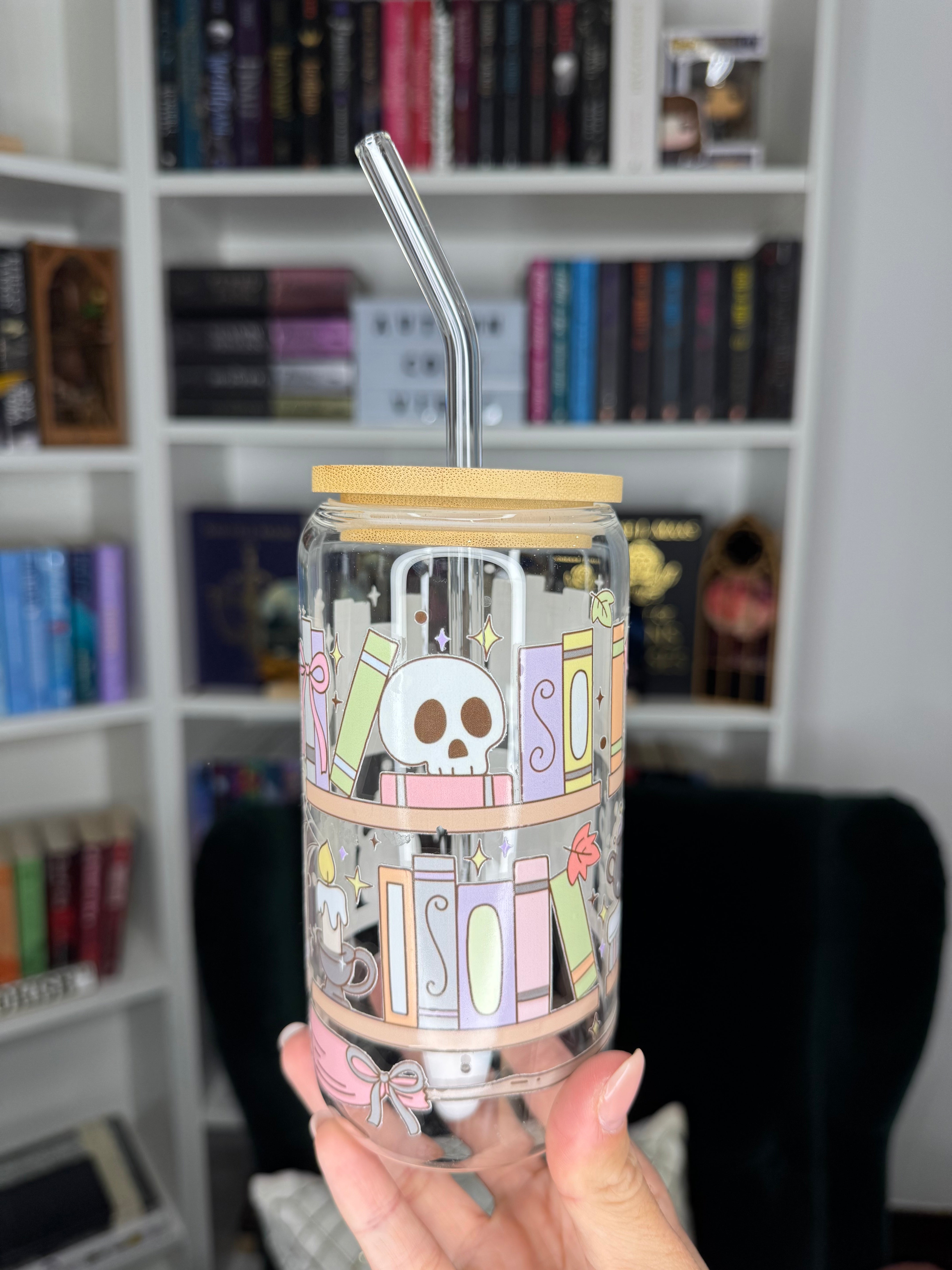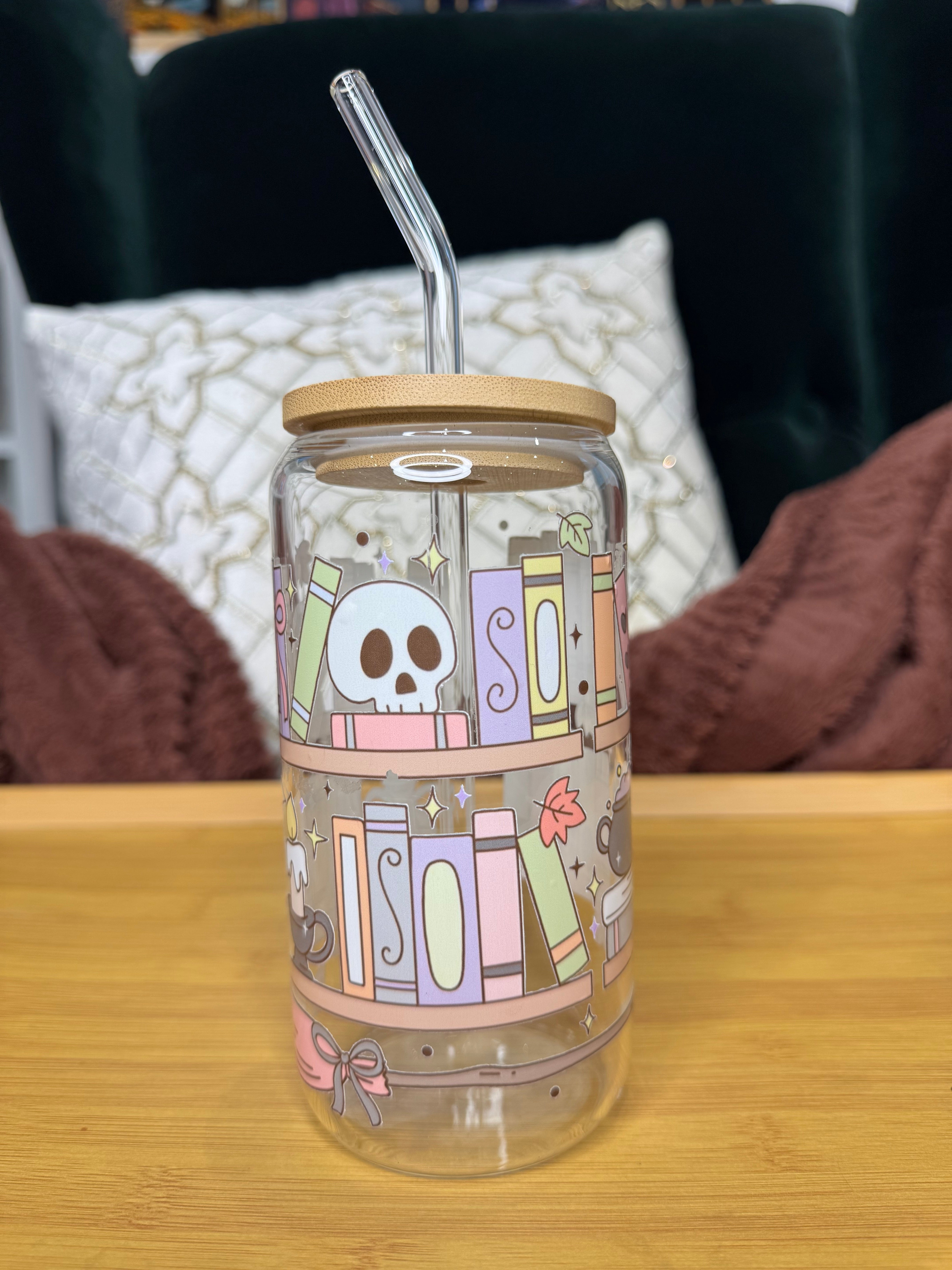 Glass Cup (con cannuccia di vetro e tappo in legno) decorato con disegnini autunnali spooky 🍂.