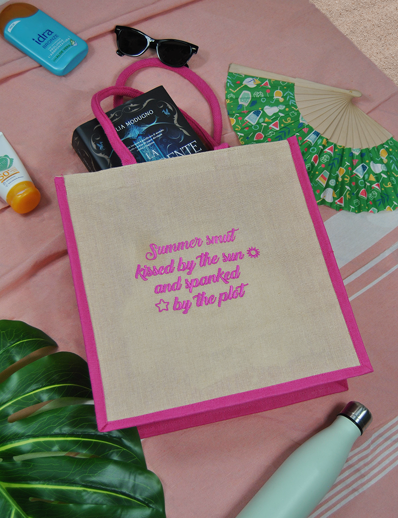 La nostra borsa mare "Summer smut kissed by the sun and spanked by the plot" è il compagno perfetto per chi non rinuncia a storie audaci e avvincenti sotto l’ombrellone.