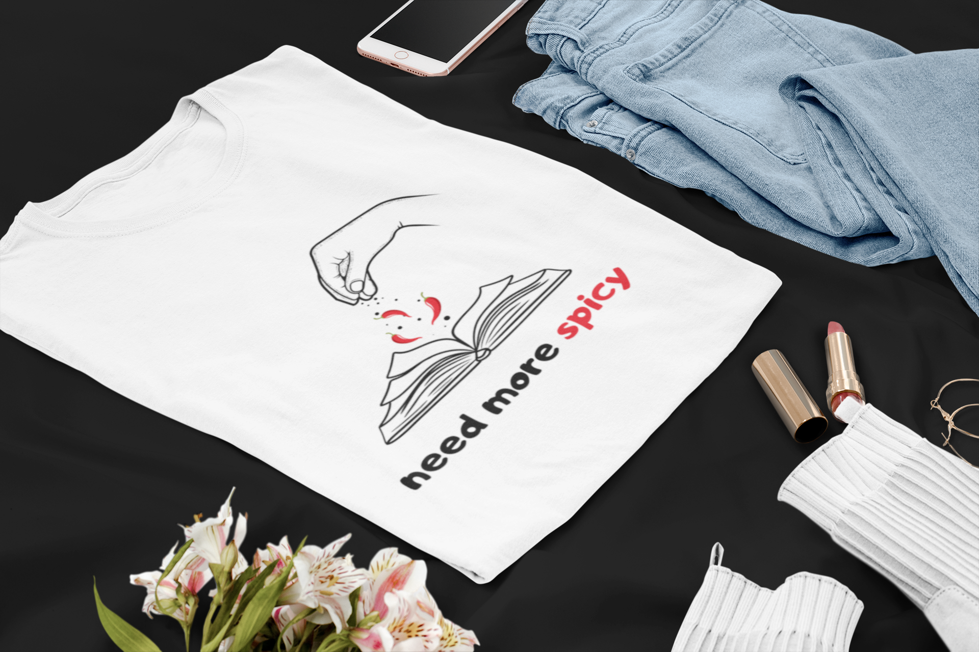 Noi lettori non ci stanchiamo mai dello spicy e vogliamo manifestarlo con questo capo divertente e ironico! Potrai scegliere tra la t-shirt e la felpa, entrambe presentano una stampa sul davanti con la frase: